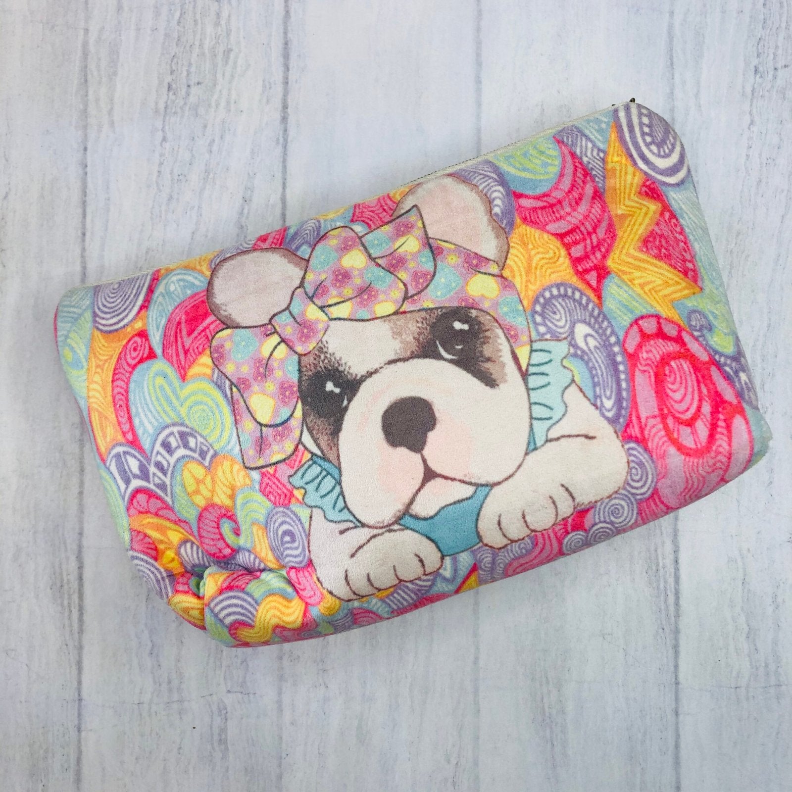 ¡Lleva a tu mejor amigo a todas partes con estilo! Este cosmetiquero con diseño de bulldog francés es perfecto para guardar tus esenciales con un toque adorable. Su diseño colorido y práctico lo convierte en el compañero ideal para tus aventuras diarias. ¡Comodidad y ternura para los amantes de los peludos!